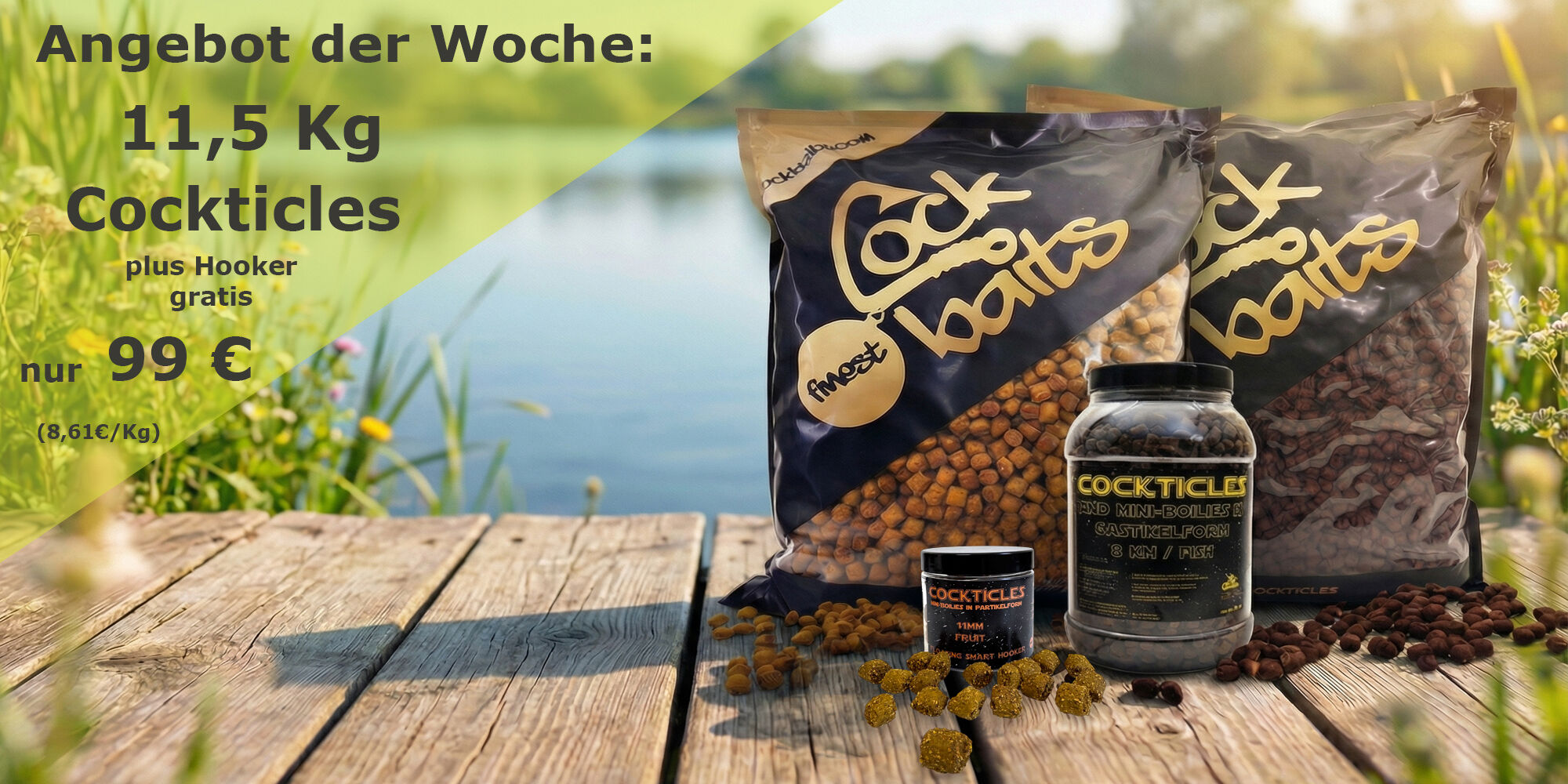 Unsere vielseitige Bait-Range zeichnet sich dadurch aus, für jedes Gewässer und jede Jahreszeit geeignet zu sein – ein wahres Qualitätsmerkmal und Zeichen wahrer Fängigkeit. Der Schlüssel zum Erfolg liegt in der peniblen Abstimmung hochwertigster Zutaten – viele tierische- bzw. pflanzliche Proteine, Fette und ausgewogene Kohlenhydrate garantieren den Fangerfolg. Unser Bernd ist davon überzeugt, dass Qualität und die beste Auswahl an qualitativen Inhaltsstoffen – bei gleichem Zeitaufwand – zu wesentlich mehr Fängen führen als herkömmliche Baits, die für Karpfen einfach nicht (mehr) attraktiv genug sind. Bei Cockbaits verwenden wir ausschließlich frische und hochwertige Fischmehle – keine gestreckten Mehle oder andere Zauberzusätze. Dein Erfolg am Wasser ist unser Auftrag – und diesem gehen wir mit Leidenschaft nach. Auf eine Formel gebracht: Vertraue auf Cockbaits, wenn es um hochwertige Köder geht.
